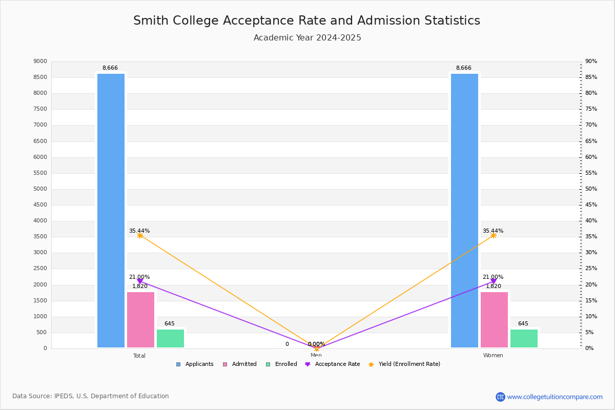 Smith College Acceptance Rate 2024. The acceptance rate at smith college is 11%, placing it in the top 5% of colleges and universities. List your unweighted gpa, any sat /act scores, and ecs.